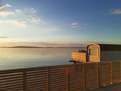 Panoramahyttene i Evjua ble bygget i 2021, og ligger "litt uti Mjøsa" på moloen rett ved Skibladnerbrygga. Disse minihyttene passer perfekt til partur, vennetur eller for en liten familie som vil oppleve GLAMPING på sitt beste.