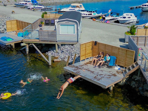 Om sommeren står disse lekre hyttene på moloen "litt uti Mjøsa" rett ved den populære bryggerestauranten Viken II. Disse minihyttene passer perfekt til partur, vennetur eller for en liten familie som vil oppleve GLAMPING på sitt beste.